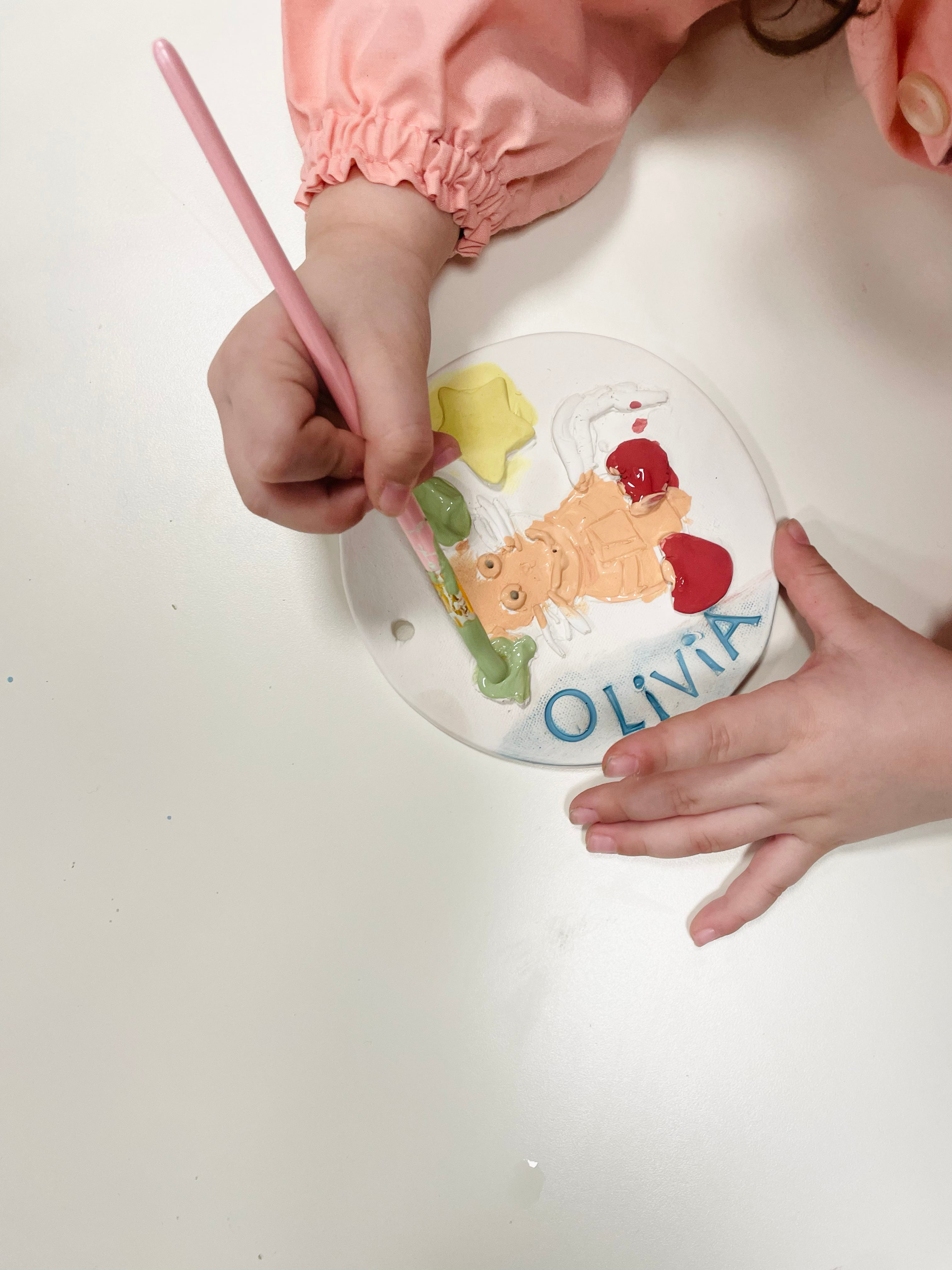 Una volta modellato il pezzo, ogni bambino potrà decorarlo con i nostri colori specifici per ceramica.