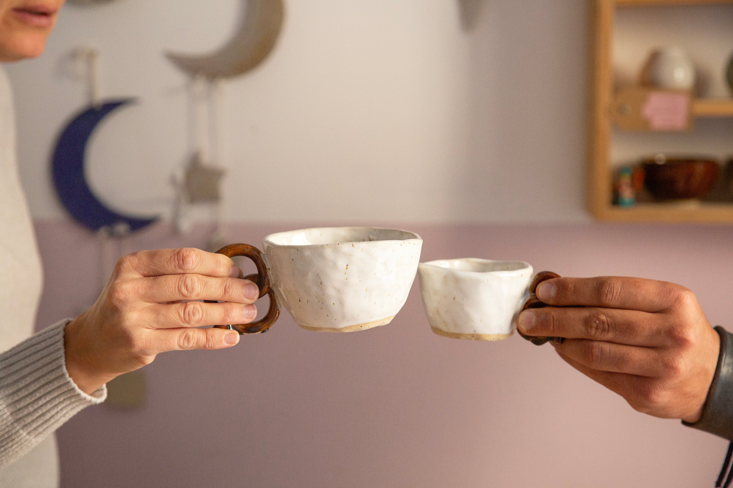 Tazze realizzata a mano in grès e smaltata con smalto atossico,