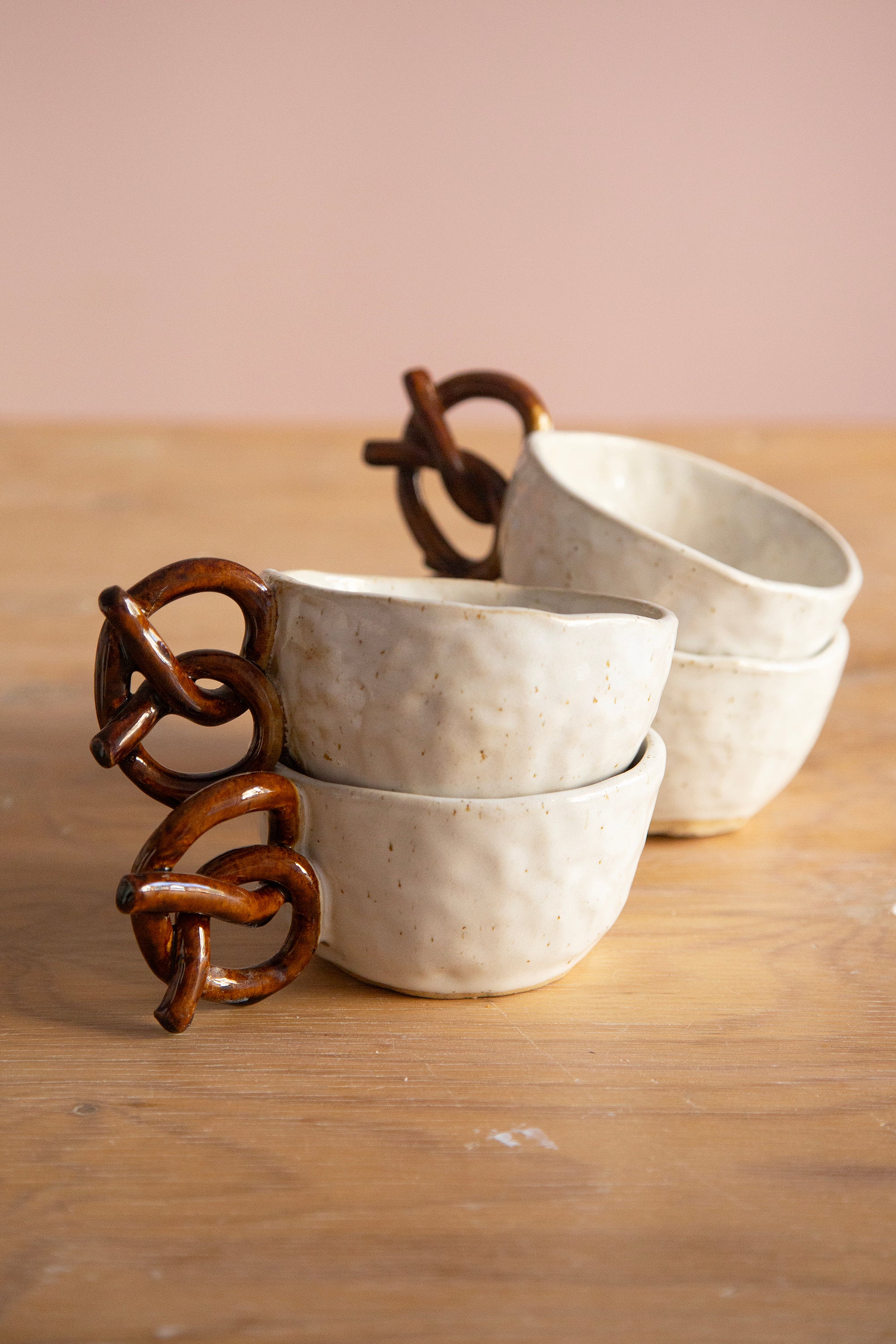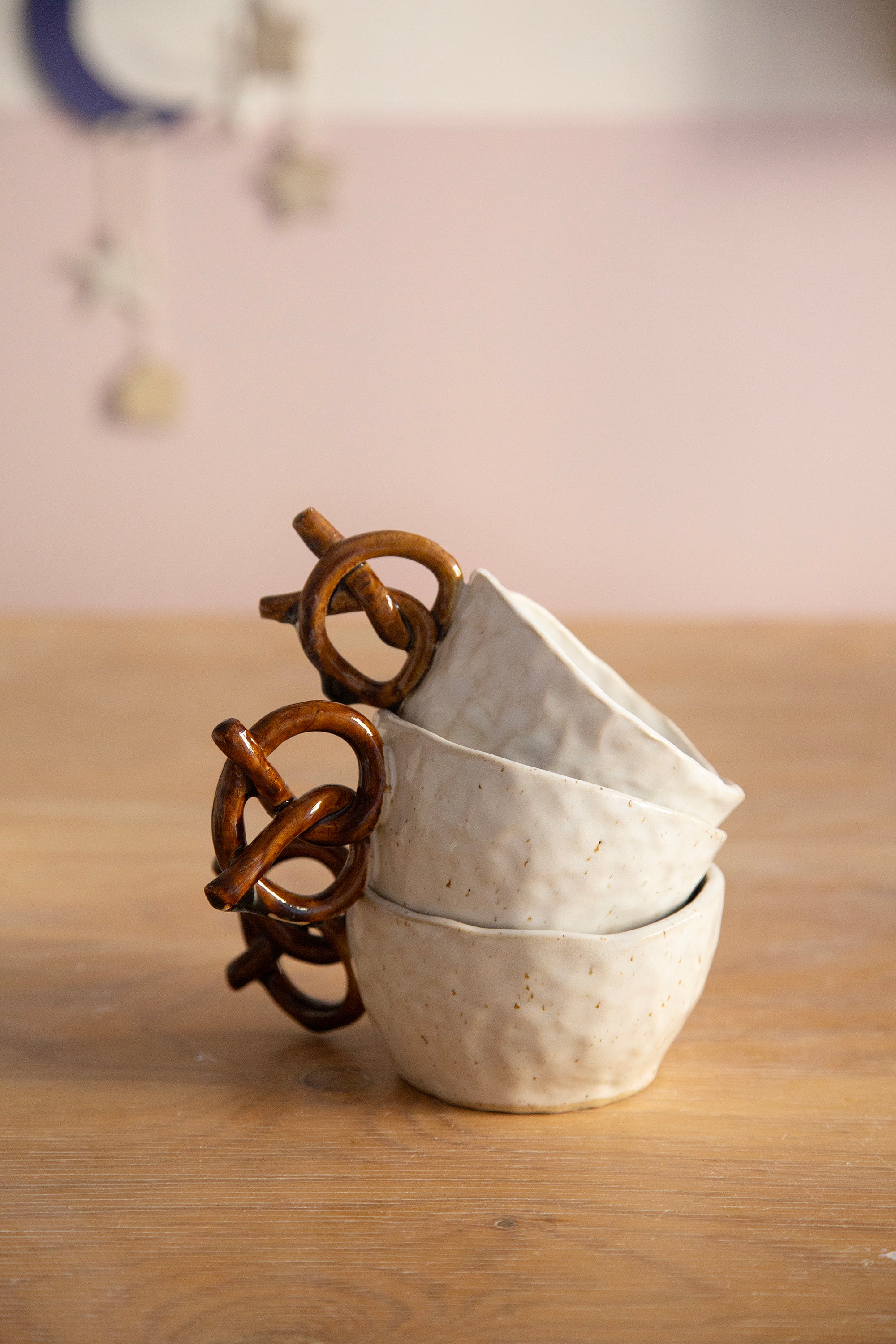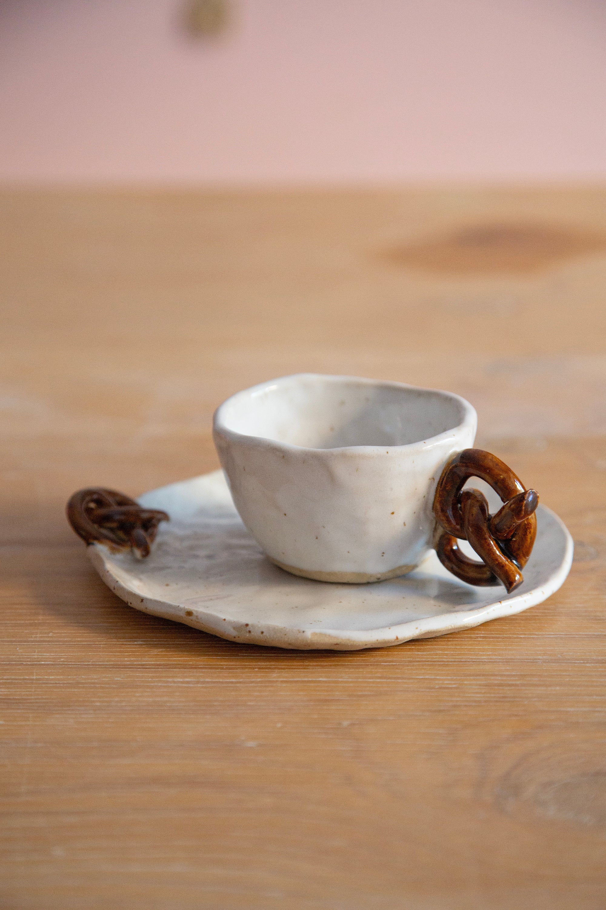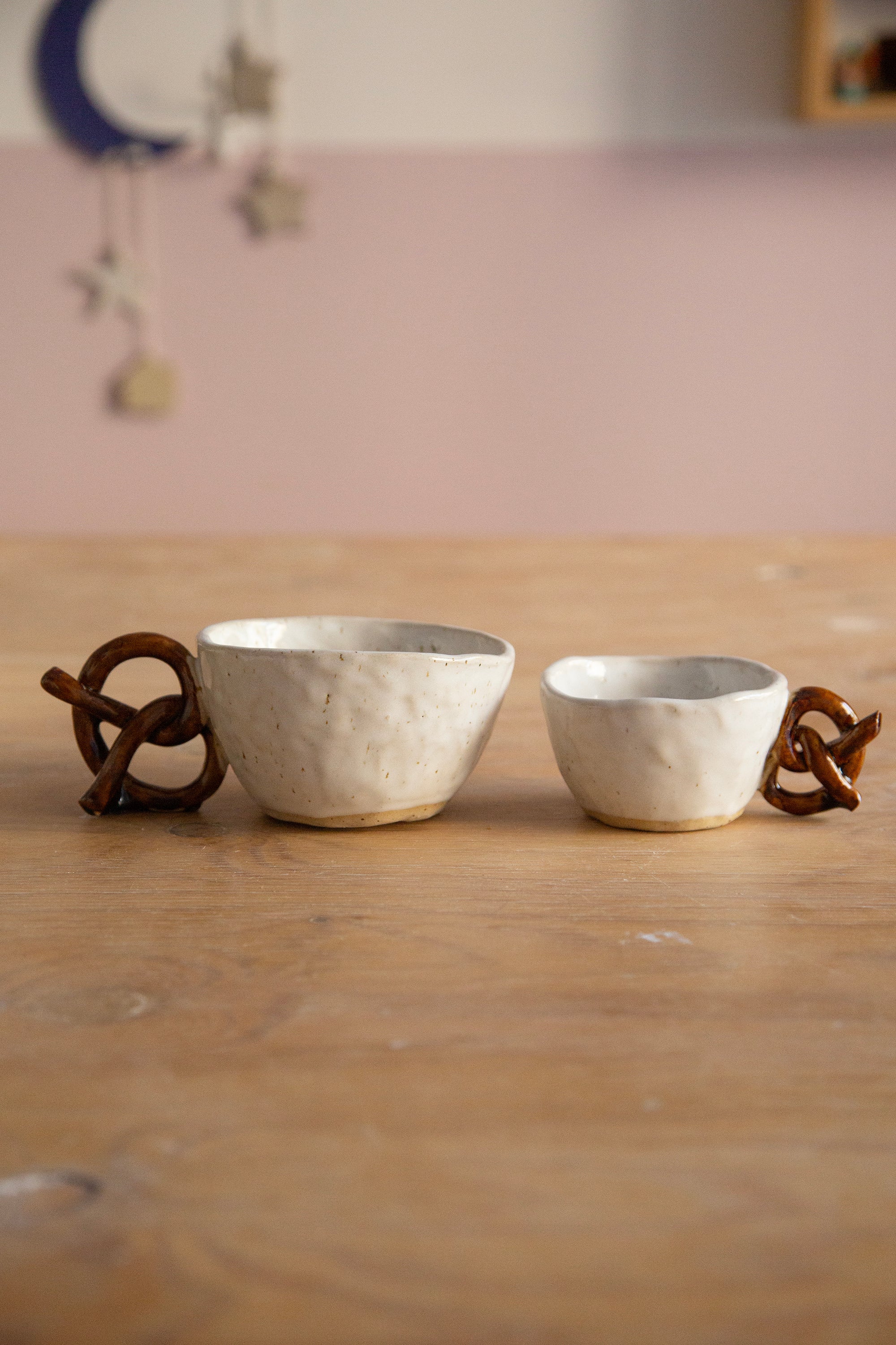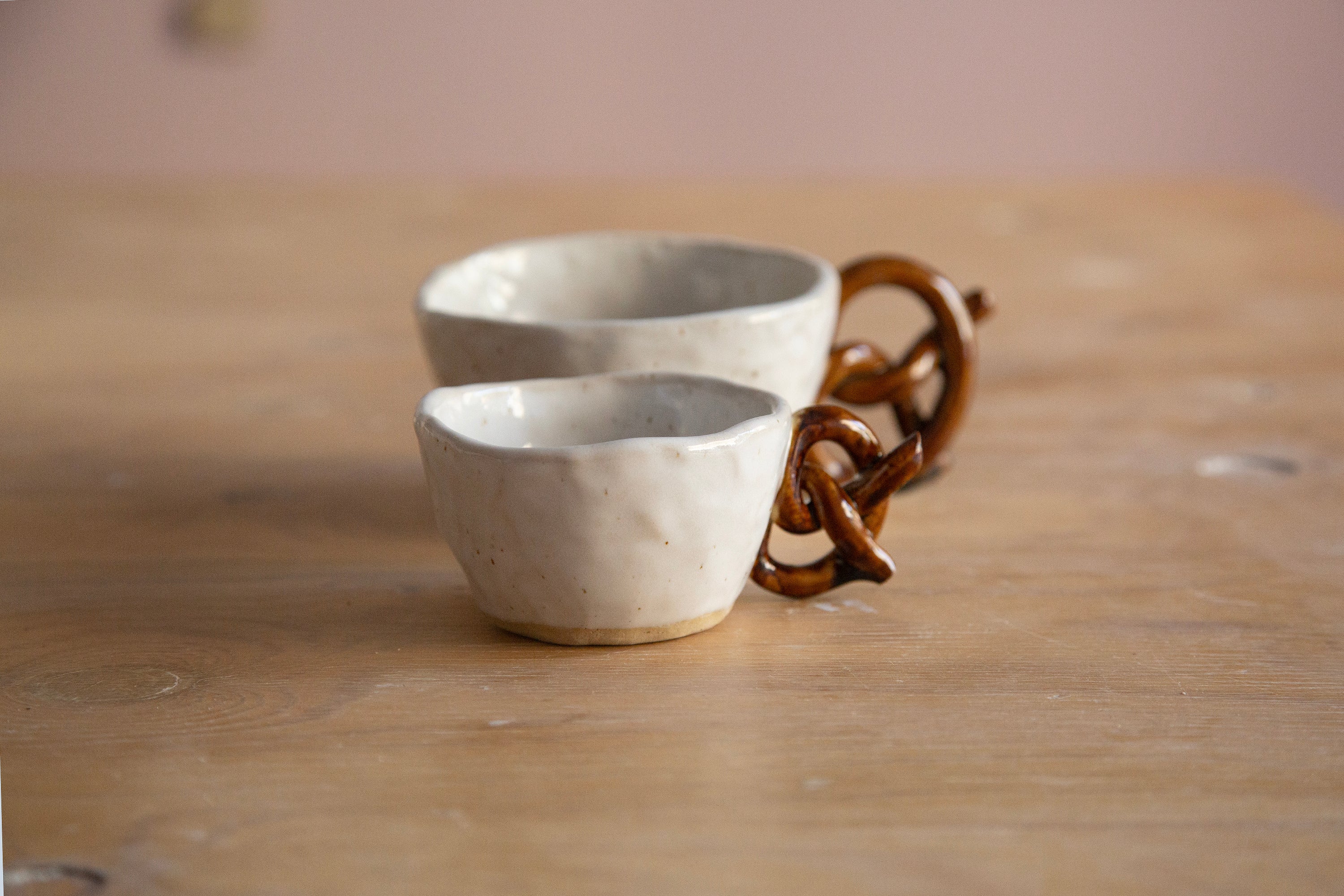 Tazza Pretzel Espresso: diametro 8c, larghezza con manico 11cm, altezza 5cm, capienza circa 15cl